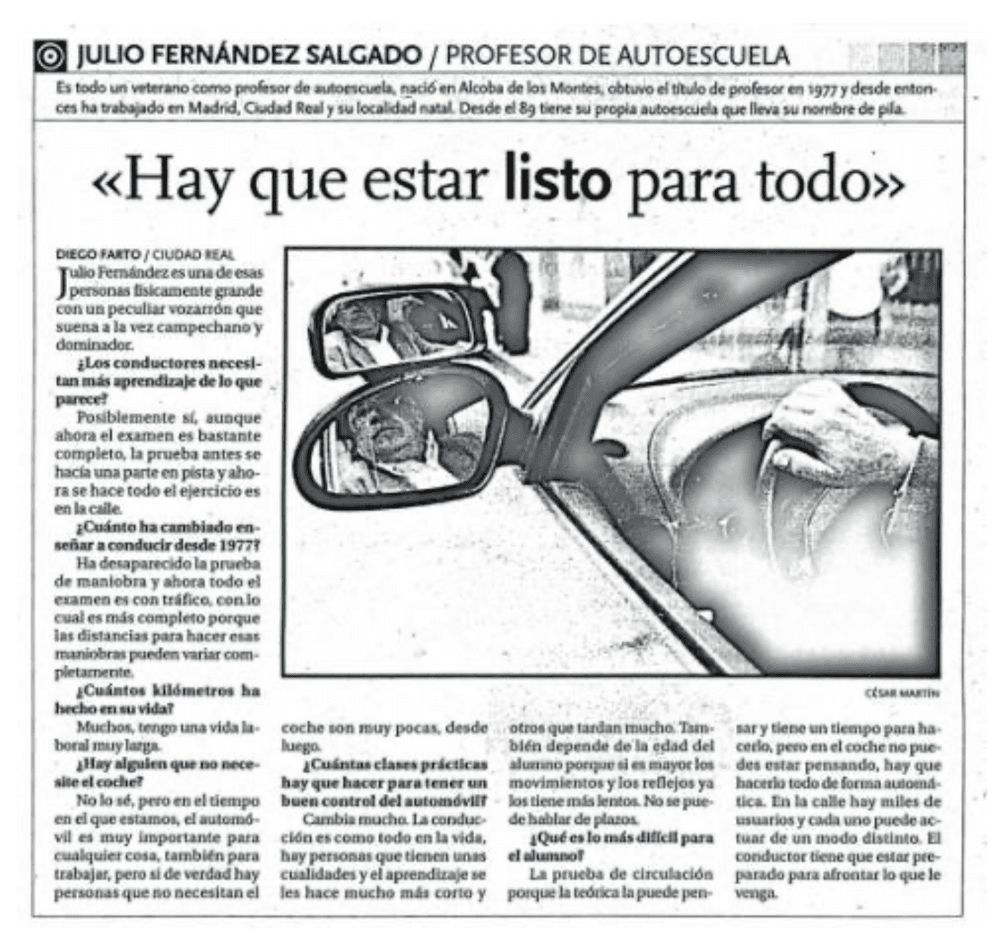 Julio F. S, Fundador y Profesor de Formación Vial desde 1976. Empezó desarrollando su profesión en Madrid y años más tarde decidió montar su propia autoescuela en Ciudad Real donde ha estado más de 12 años al frente de la autoescuela (1988-2008).
